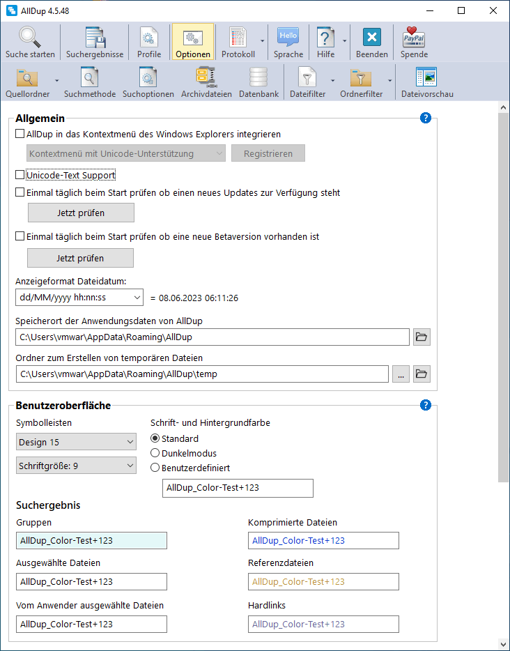 AllDup Programmoptionen