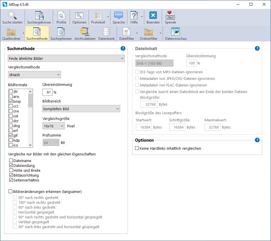 AllDup Suchoptionen