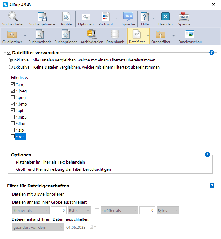 AllDup Dateifilter