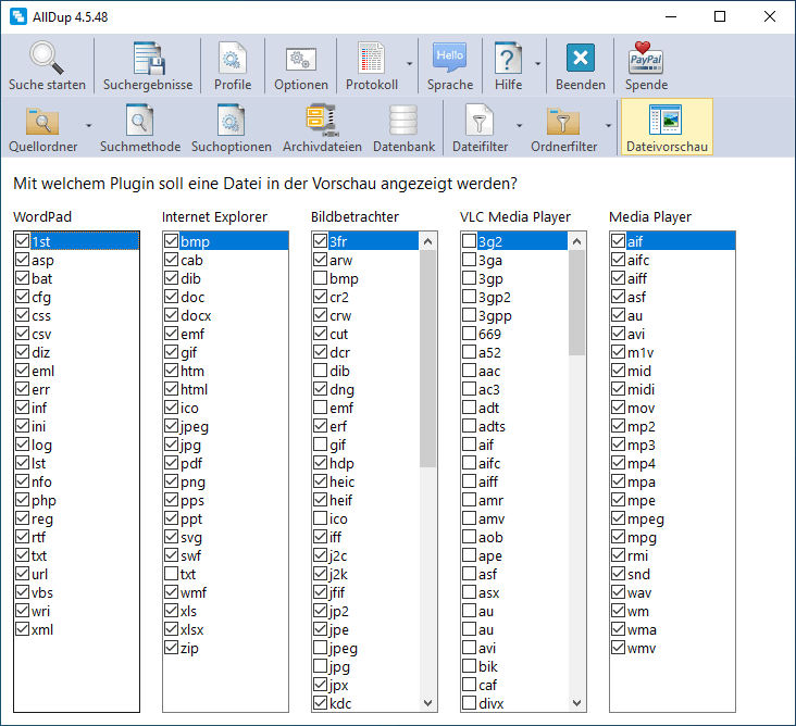 AllDup Einstellungen Dateivorschau
